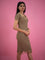 Women Striped Tassel Pullover Knit Dress, brown casual dress with stripe and collar
